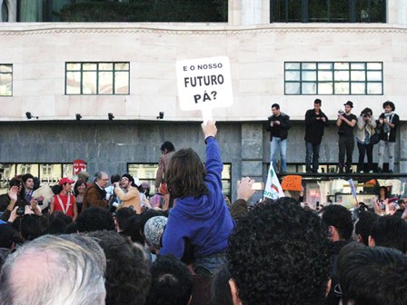 A cena da criança nos ombros do pai trazendo nas mãos um cartaz que diz “E o nosso futuro pá?” retrata a abrangência do manifesto organizado pela “geração à rasca”, representada, no último sábado, pela esperança uníssona de mais de uma geração. Cerca de 200 mil pessoas de diferentes idades e classes sociais estiveram presentes na Avenida da Liberdade, no coração de Lisboa, para lutar contra a precariedade, a falta de emprego e de perspectivas.